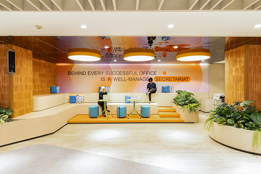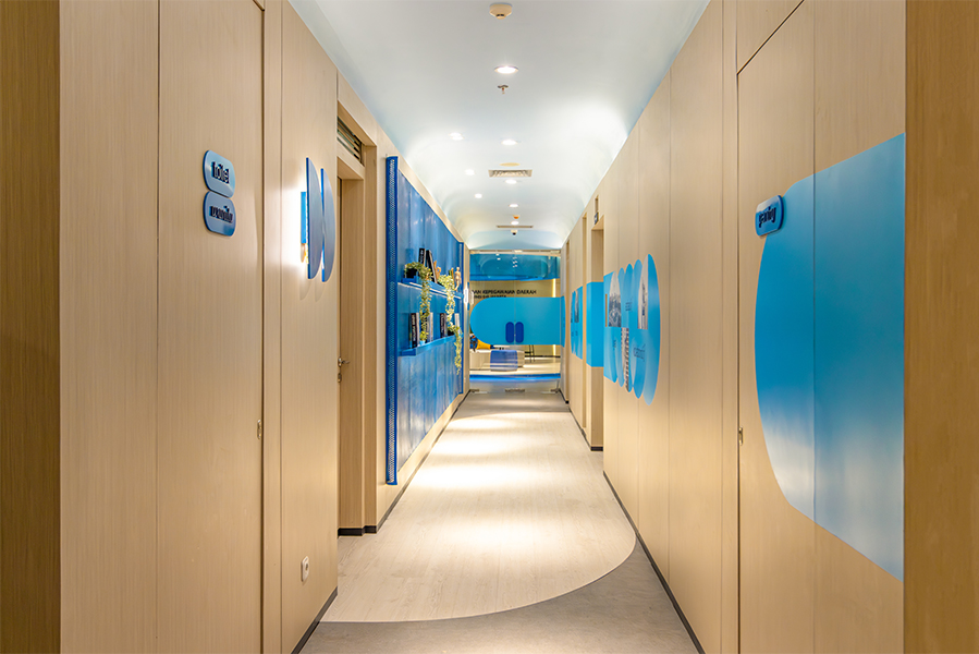 The interior design of Badan Kepegawaian Daerah DKI Jakarta embraces a modern open-space concept, while maintaining a clear spatial zoning between divisions through the use of distinct floor materials and color accents in each area. This approach creates a flexible and dynamic transition between work zones, allowing staff to work more fluidly, engage in discussions, and hold informal meetings without always relying on formal meeting rooms.