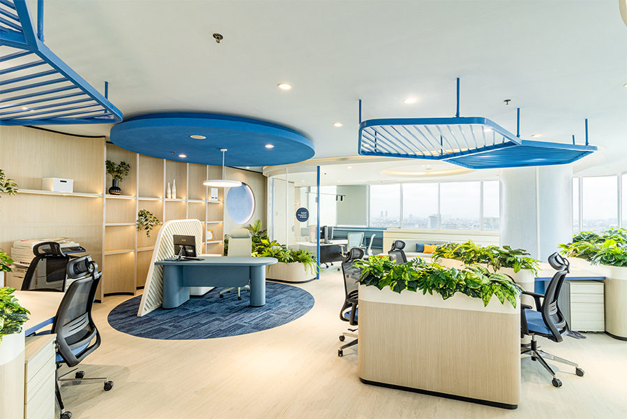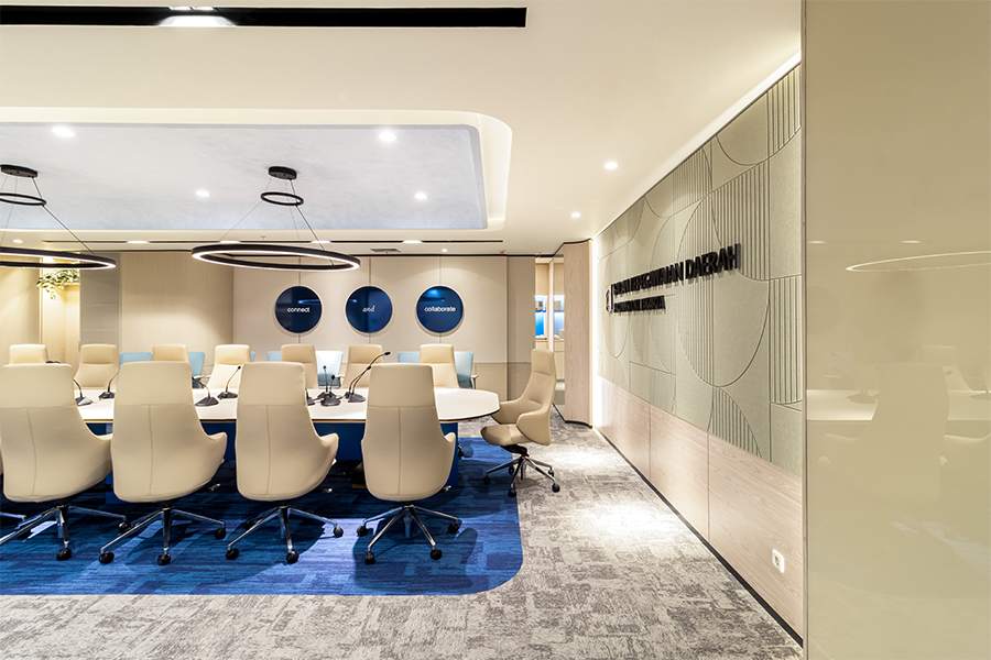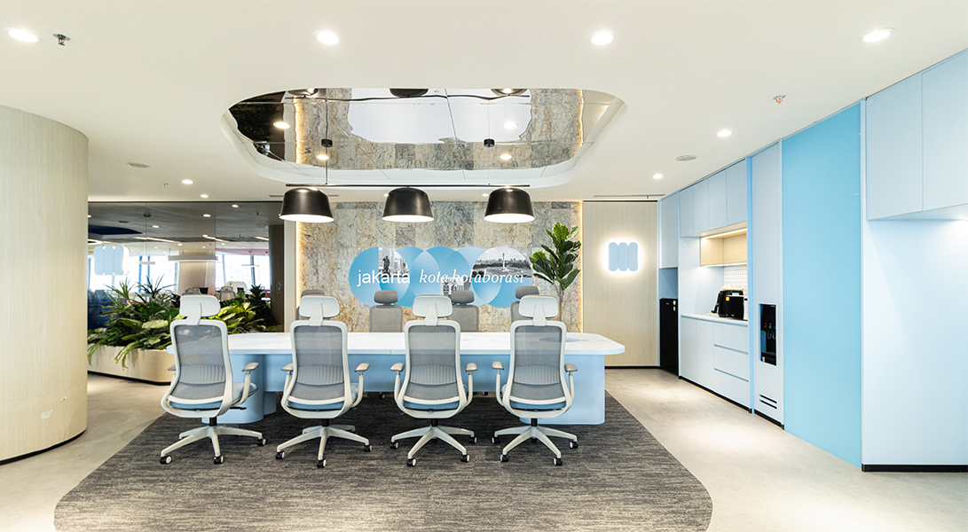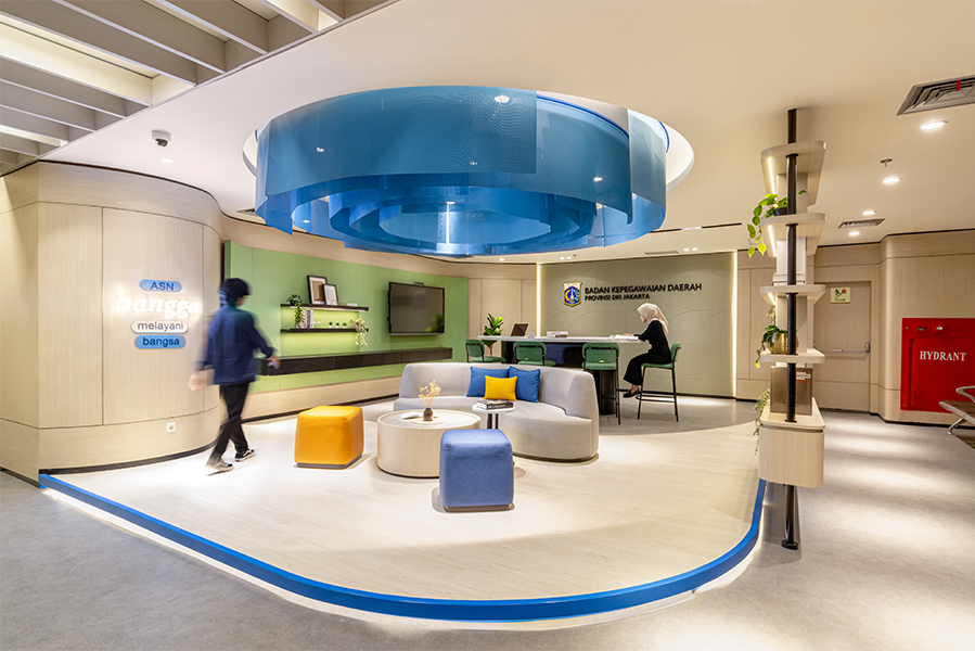 The interior design of Badan Kepegawaian Daerah DKI Jakarta embraces a modern open-space concept, while maintaining a clear spatial zoning between divisions through the use of distinct floor materials and color accents in each area. This approach creates a flexible and dynamic transition between work zones, allowing staff to work more fluidly, engage in discussions, and hold informal meetings without always relying on formal meeting rooms.